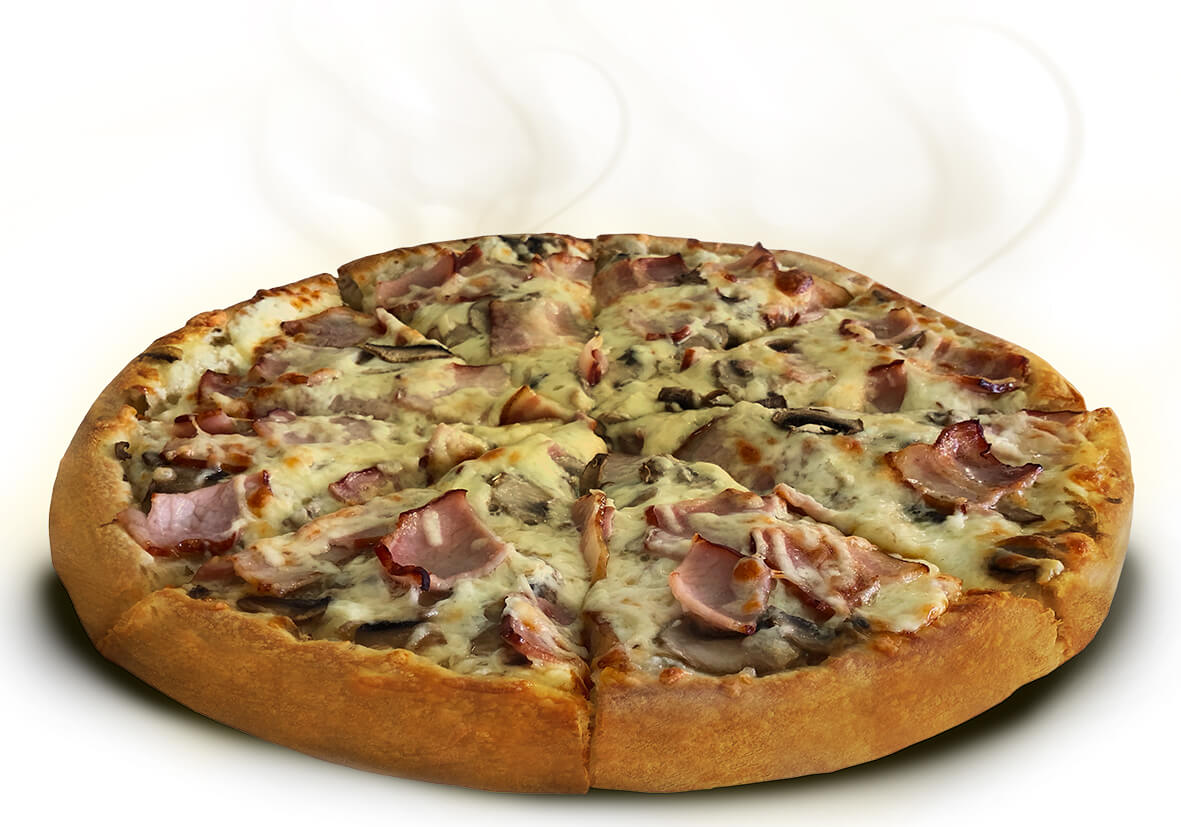 Fresh cream, bacon, fresh mushrooms & parmesan cheese.