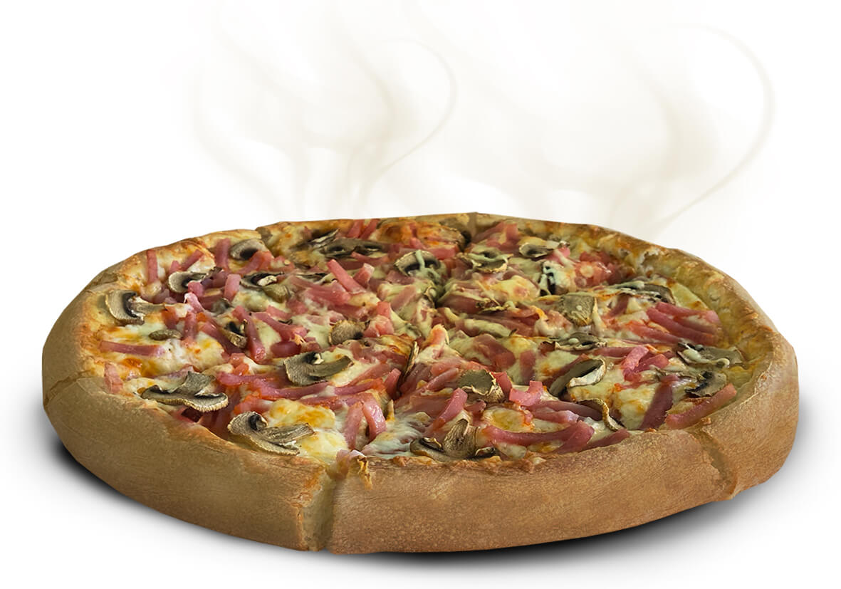 Sauce, cheese, ham, mushrooms, fetta, oregano & fresh tomato