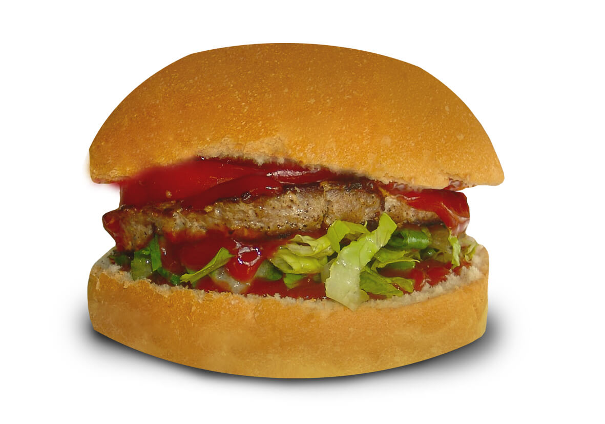With cheese, bacon, tomato, lettuce, ketchup €4.60
