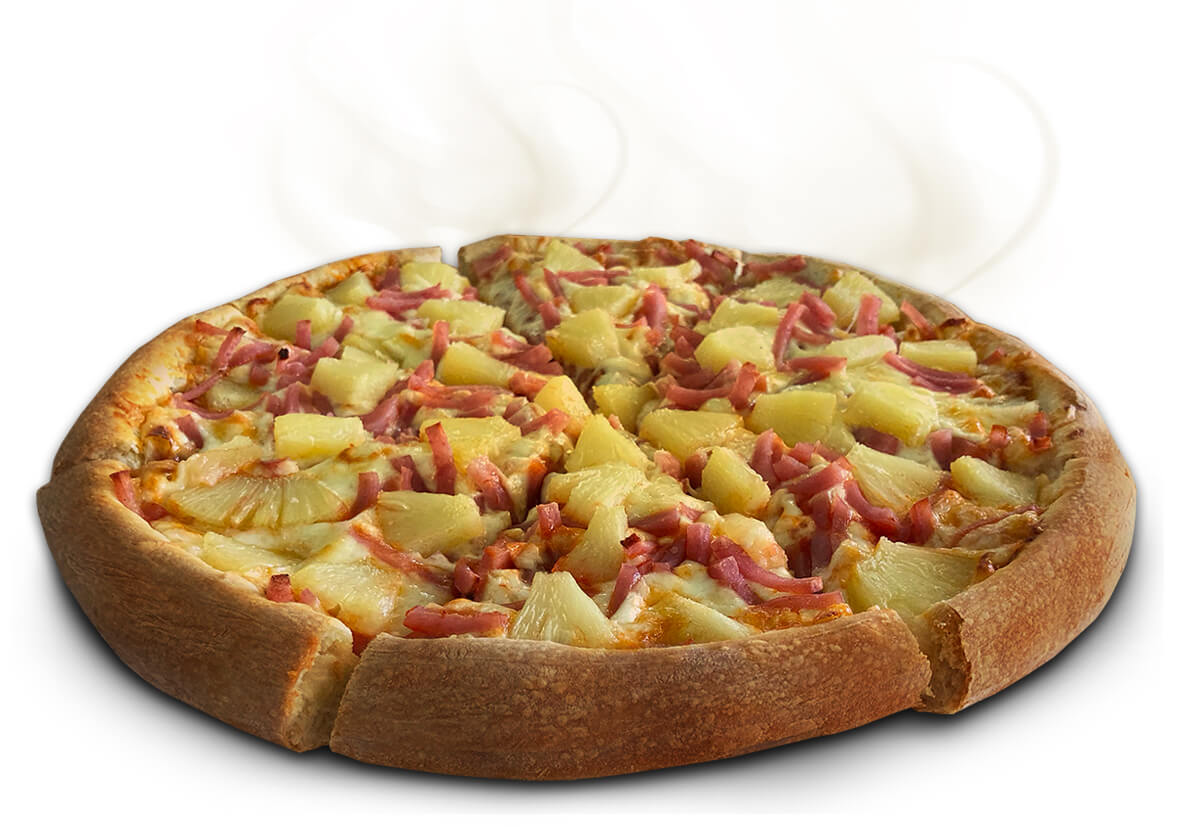 Sauce, cheese, ham, pineapple