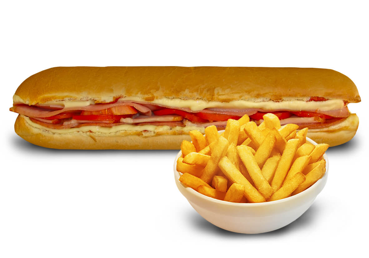Chicken or Pizza Submarine and fries